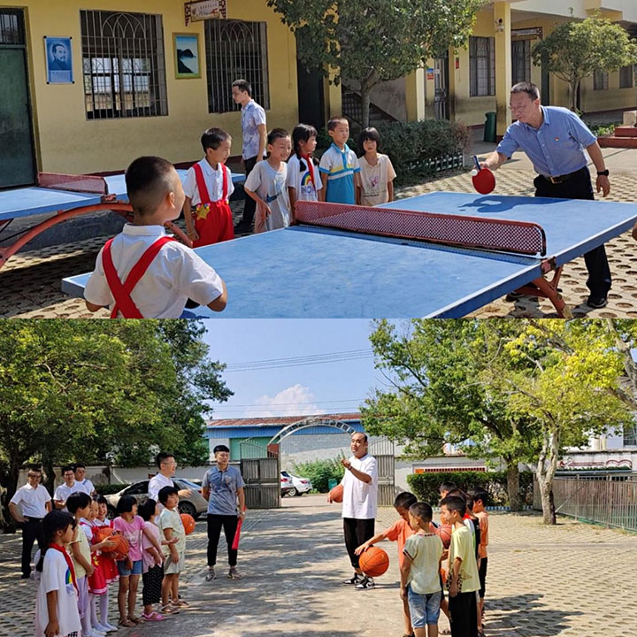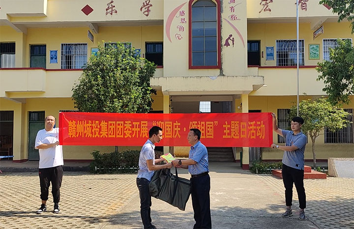 本次活動分兩個階段開展。第一階段,以愛國主義教育為切入點(diǎn),分別在良田小學(xué)和東山小學(xué)開展。黃家偉帶領(lǐng)團(tuán)員與全體師生開展升國旗、唱國歌活動,在激昂的歌聲中向國旗敬禮、向祖國致敬。隨后,黃家偉代表集團(tuán)黨委向兩所學(xué)校捐贈物資,用于改善當(dāng)?shù)剞r(nóng)村教學(xué)條件。在學(xué)生們課間休息時間,團(tuán)員們還陪伴學(xué)生們上了一堂豐富有趣的體育課。團(tuán)員們還與學(xué)校老師進(jìn)行交流座談,表達(dá)了關(guān)心與寄語。