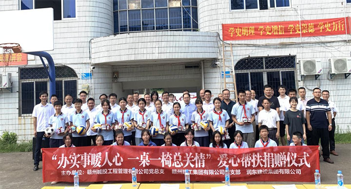 近日,工程管理公司黨總支聯(lián)合贛州建工集團(tuán)黨支部、潤東建設(shè)集團(tuán)在贛州市鳳崗中學(xué)(老校區(qū))開展“辦實(shí)事暖人心,一桌一椅總關(guān)情”愛心幫扶主題黨日活動,工程管理公司黨總支和贛州建工集團(tuán)黨支部黨員、潤東建設(shè)集團(tuán)及鳳崗中學(xué)師生代表共計(jì)50余人參加。