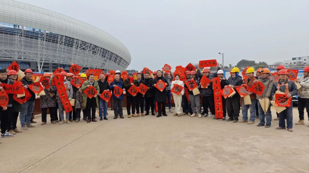 1月25日,贛州市總工會、贛州城投集團工會在贛州市全民健身中心一期項目工地開展迎新春“送萬福、進萬家”書法公益活動,為在寒冬里堅守崗位的一線工人書春送福,送去工會“娘家人”的關(guān)懷溫暖,為2024年春節(jié)營造歡樂吉祥的節(jié)日氛圍。