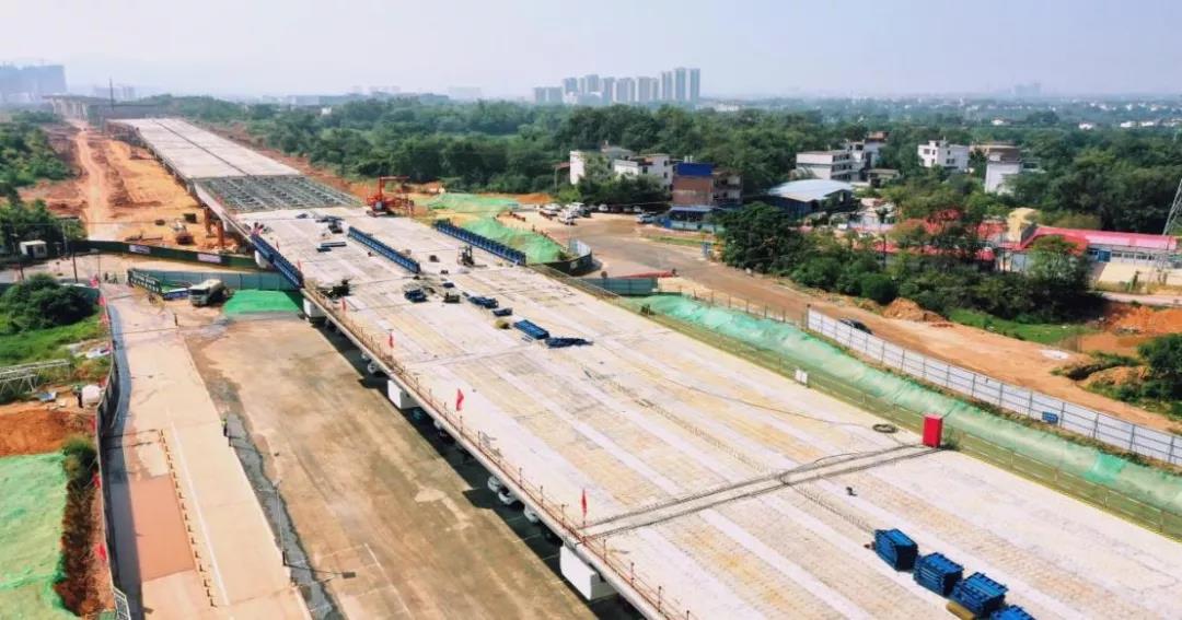 蓉江三路快速路(含地下綜合管廊)項目作為“四橫六縱”中的一條南北走向主干線,南起丁香路,北至筱壩大橋南端接地點,總投資約25.87億元,全長約5.1公里,主路為高架段城市快速路,規(guī)模為雙向6車道。項目于2020年8月1日正式開工,截至2021年11月15日,共完成總工程量的51%,其中橋梁工程完成66.2%,道路工程完成48.7%,地下綜合管廊工程完成約84.6%,預(yù)計在2022年年底完工。項目建成后,可實現(xiàn)蓉江新區(qū)、高鐵新區(qū)南北向聯(lián)系,大大提高新老城區(qū)交通服務(wù)水平,實現(xiàn)贛州交通發(fā)展水平與社會經(jīng)濟發(fā)展水平相適應(yīng)。