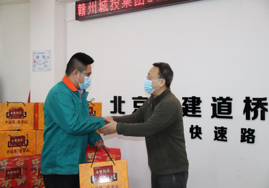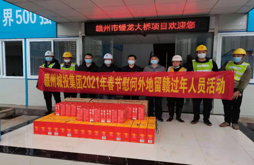 2月9日,贛州城投集團(tuán)開展2021年春節(jié)慰問市域外留贛州過年人員活動,為留在贛州過年的市域外集團(tuán)員工及項目工人送上年貨禮包,讓他們就地過好溫馨春節(jié)。