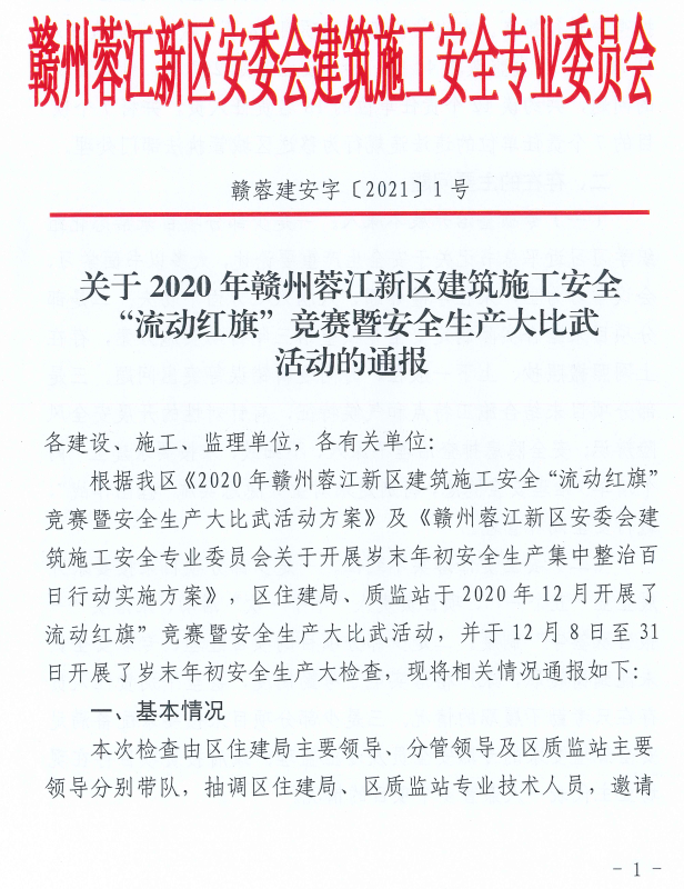 3月2日上午,贛州蓉江新區(qū)表彰通報2021年贛州蓉江新區(qū)建筑施工安全“流動紅旗”競賽暨安全生產(chǎn)大比武活動開展情況,其中,星洲萃苑(一期)項目在此次評比中喜獲“流動紅旗”,并獲得贛州蓉江新區(qū)安委會發(fā)放的經(jīng)濟獎勵12000元整。