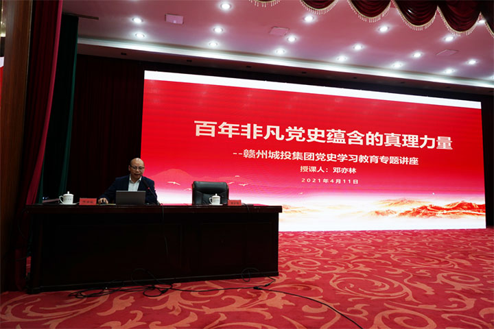 開學典禮后,贛州城投大學(黨校)第二學期第一課黨史學習教育專題講座開課。本次邀請了江西理工大學應用科學學院黨委書記、馬克思主義學院教授、碩士生導師鄧亦林以《百年黨史中蘊含的真理力量》的主題為全員作黨史學習教育專題講座。