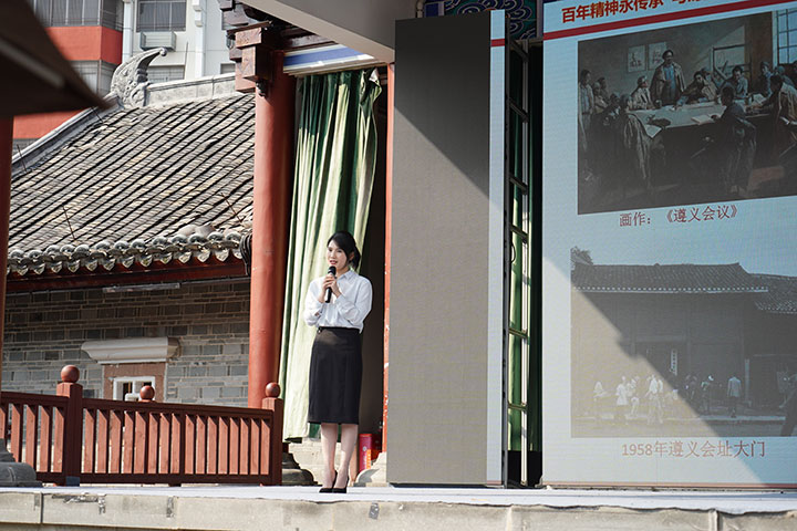 在郁孤臺街區(qū)古戲臺上,來自機關(guān)一支部、集團機關(guān)二支部、土地置業(yè)公司黨支部的7名參賽代表圍繞分享會主題,結(jié)合自身工作實際,從黨風(fēng)廉政文化、建黨百年精神、國企發(fā)展道路、黨旗的故事等方面,暢談閱讀《中國共產(chǎn)黨簡史》等黨史學(xué)習(xí)教育指定書籍的感悟和體會?;顒又羞€增設(shè)了紅色電影配音、誦讀《紅色家書》、互動問答、點評分享等環(huán)節(jié),節(jié)目形式豐富多彩,現(xiàn)場精彩紛呈。