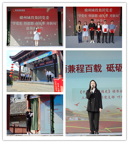 贛州城投集團黨委“學(xué)黨史 悟思想 辦實事 開新局”讀書分享會將每月舉辦一期,每期充分結(jié)合各黨支部業(yè)務(wù)特色,走進社區(qū)、走進項目、走進基層等,一直持續(xù)到11月份共舉辦八場,前七期由集團黨支部結(jié)對聯(lián)合承辦預(yù)賽階段,第八期將由集團黨委主辦讀書分享會總決賽。