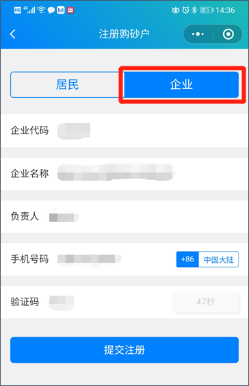 4. 選擇 “企業(yè)”注冊(cè),并填寫(xiě)相關(guān)信息。(企業(yè)代碼由贛州匯金砂業(yè)有限公司提供)