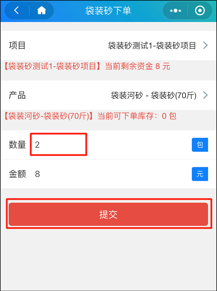 輸入下單數(shù)量,并提交