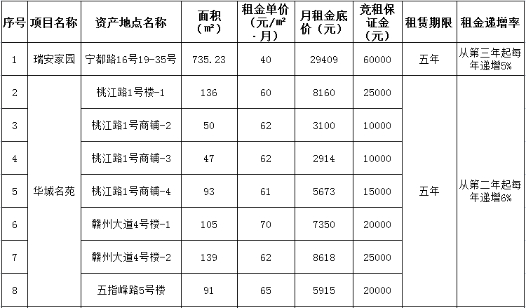 贛州振興實(shí)業(yè)有限責(zé)任公司委托江西潤資拍賣有限公司,定于2020年10月22日10:00開始在贛州市公共資源交易中心(長征大道9號)進(jìn)行國有資產(chǎn)公開招租,現(xiàn)歡迎符合條件的單位或個(gè)人前來報(bào)名參加競租。