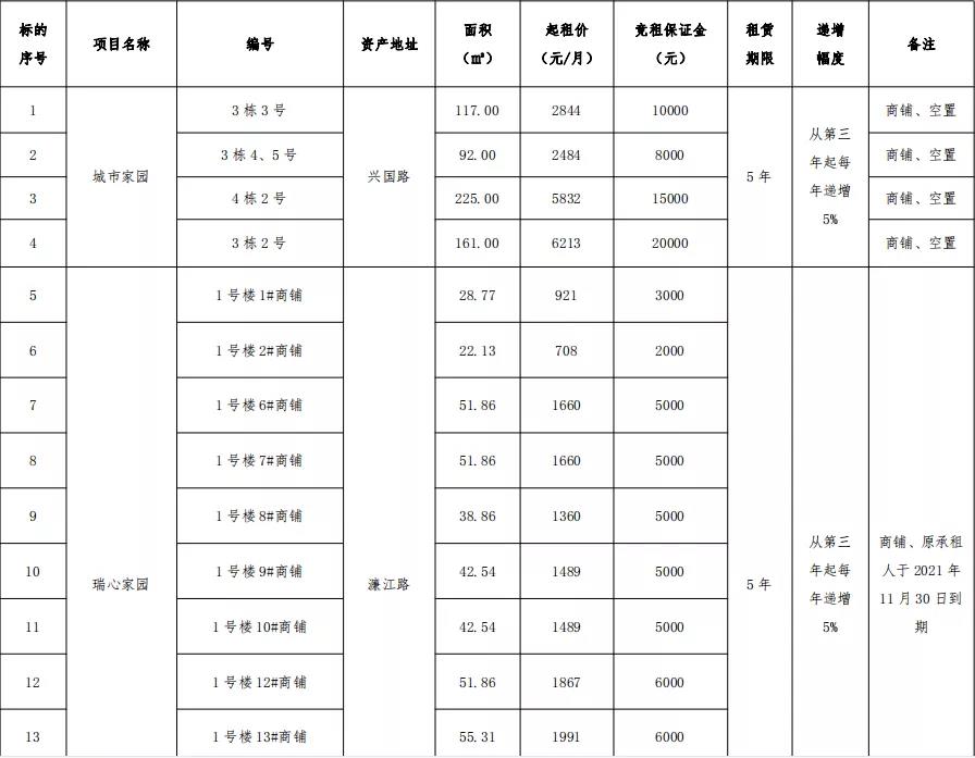 競租保證金到賬截止時間:2021年9月28日17:00止;