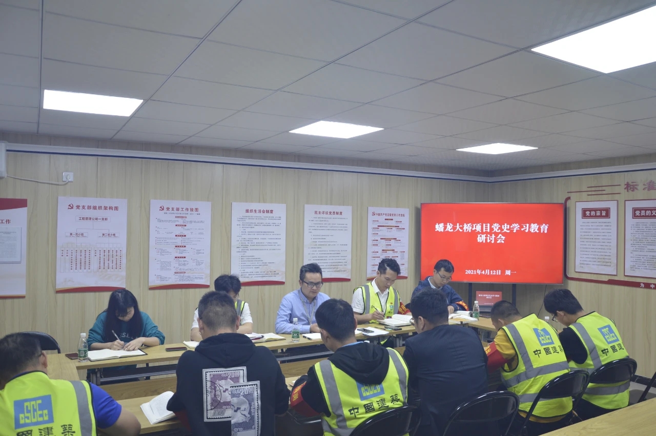在蟠龍大橋項目,黨史學習教育活動已常態(tài)化開展。在辦公區(qū)、施工現(xiàn)場掛起了一抹抹醒目的黨史學習宣傳標語,在黨員活動室走廊設置了黨史學習墻。在每月首個工作日,項目部組織全體黨員及項目人員組織升旗活動,并開展國旗下的黨史故事誦讀活動。同時,組織觀看微紀錄片《見證初心和使命的“十一書”》,重溫革命先烈的感人故事,感悟初心使命,弘揚革命精神,為高質(zhì)量推動項目建設積極奮斗。