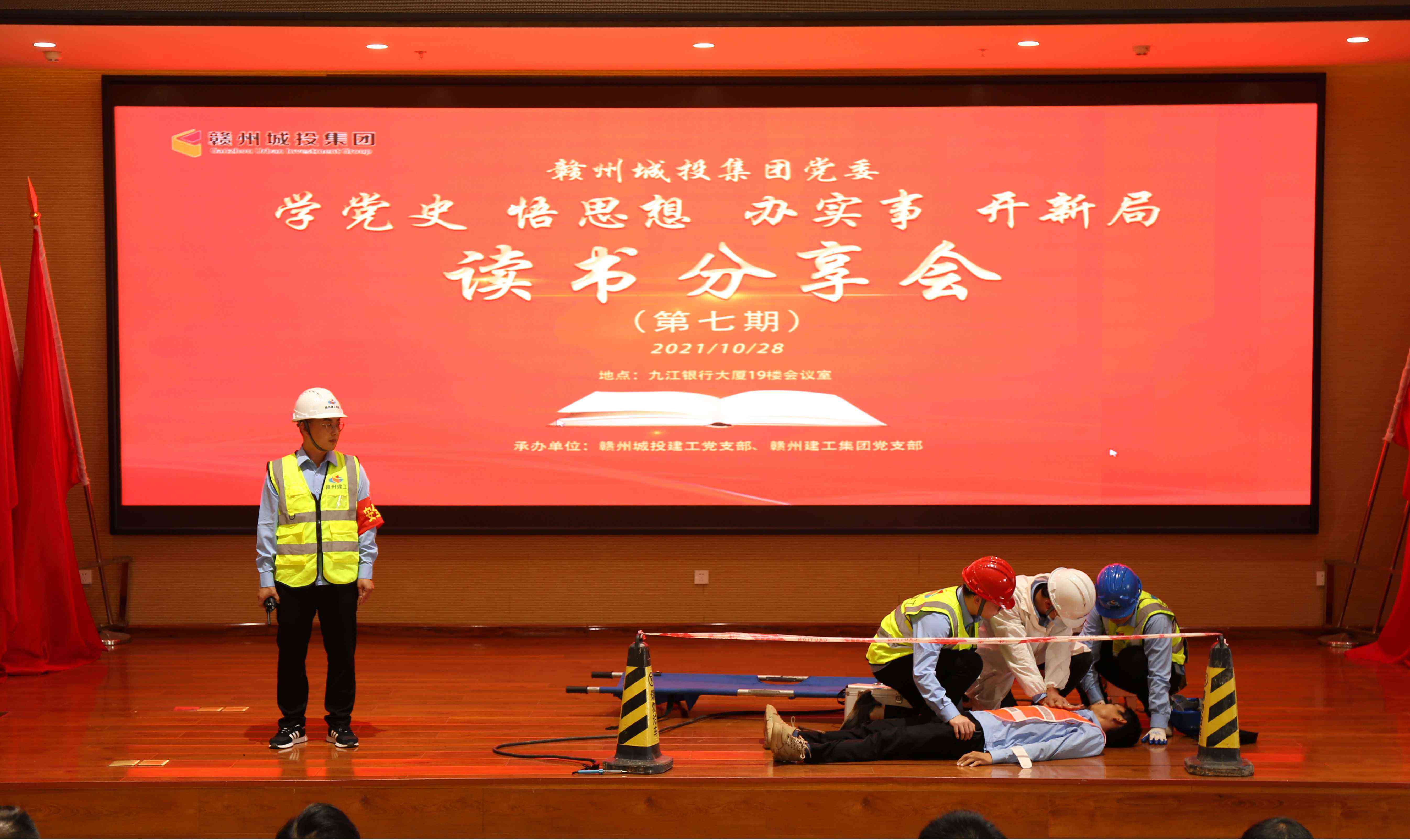 活動在紅色歌曲《唱支山歌給黨聽》中拉開帷幕,抒發(fā)了城投人對黨、對祖國的無比熱愛之情。讀書分享活動中,來自贛州城投建工黨支部、贛州建工集團(tuán)黨支部的6位選手結(jié)合黨史學(xué)習(xí)教育和工作實際,以蓬勃的朝氣、真摯的感情,熱情謳歌了中國共產(chǎn)黨建黨100年來創(chuàng)下的豐功偉績,深情講述了革命先輩的感人事跡,突出宣傳了國企改革、創(chuàng)新發(fā)展、項目攻堅等方面取得的重大成就,充分展現(xiàn)了城投集團(tuán)廣大黨員職工為群眾服務(wù)、愛崗敬業(yè)、無私奉獻(xiàn)的精神風(fēng)貌。以賽促學(xué)、以賽明史,經(jīng)過角逐,贛州建工集團(tuán)黨支部的陳文港以優(yōu)異表現(xiàn)獲得第一名,贛州城投建工黨支部的曾涵鈺獲得第二名,其余選手獲得優(yōu)秀獎。讀書分享活動前,來自項目一線員工還為大家表演了情景劇《觸電事故應(yīng)急演練》,進(jìn)一步為大家普及安全知識,提高大家的安全意識。