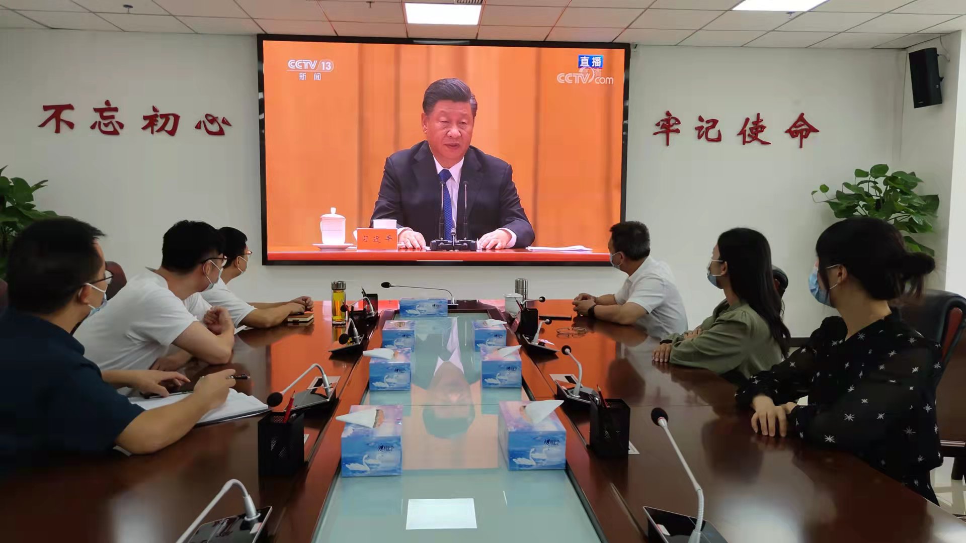 跟著直播大會(huì)現(xiàn)場(chǎng)的節(jié)奏,大家起立、肅穆,共同奏唱了國(guó)歌,認(rèn)真聆聽(tīng)了習(xí)近平總書記在大會(huì)上發(fā)表的重要講話精神。