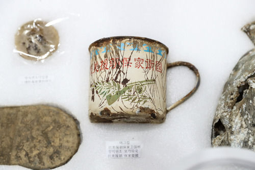 △這是2020年9月26日在韓國仁川的志愿軍烈士遺骸裝殮儀式現(xiàn)場拍攝的部分志愿軍烈士遺物。當(dāng)日,第七批在韓中國人民志愿軍烈士遺骸裝殮儀式在韓國仁川舉行,中韓雙方27日在仁川國際機(jī)場舉行遺骸交接儀式。此次韓方向中方交接117位在韓中國人民志愿軍烈士遺骸及相關(guān)遺物。新華社記者 王婧嬙 攝