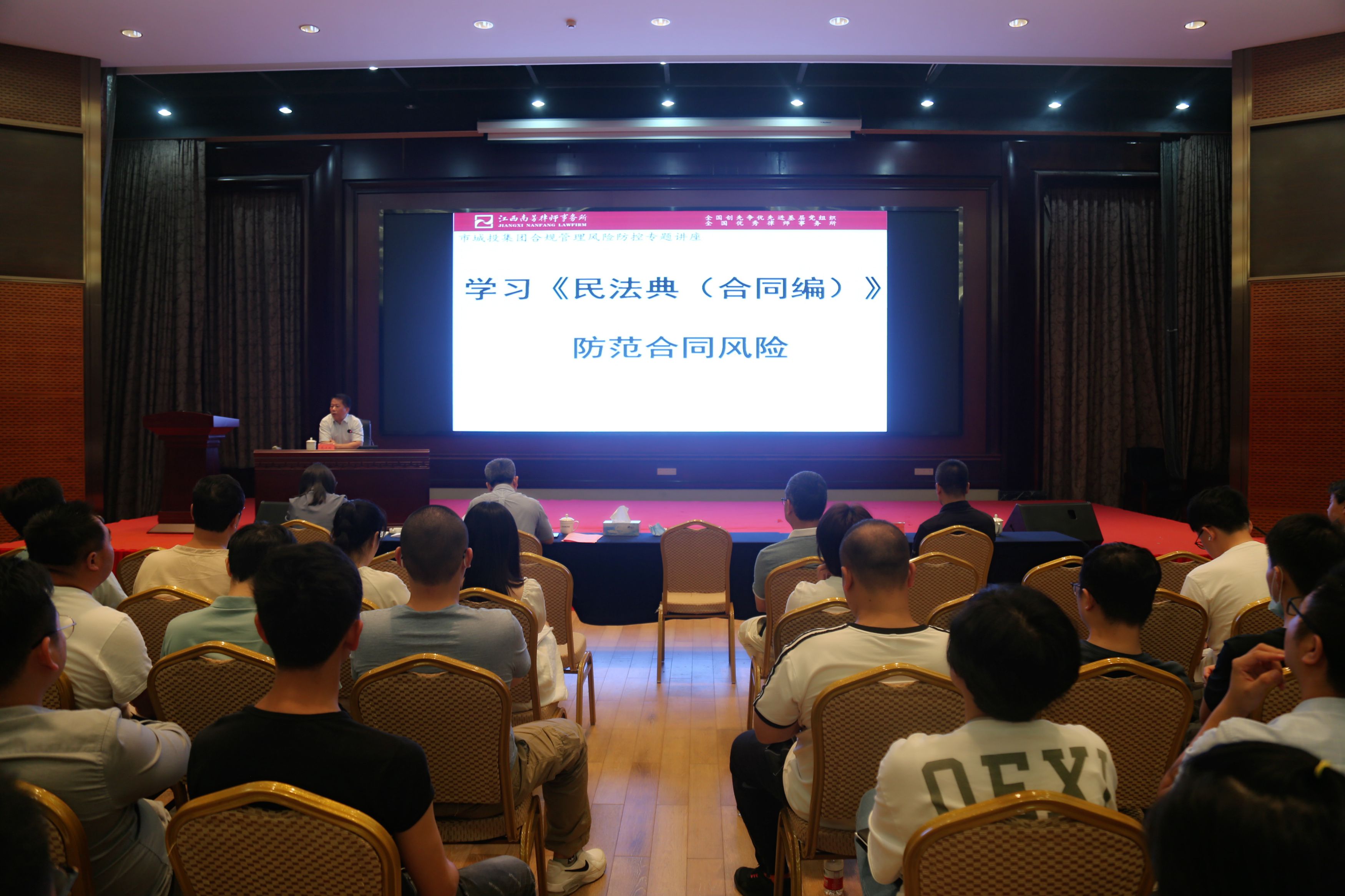 (上圖為江西南芳律師事務(wù)所范衛(wèi)權(quán)為贛州城投集團全體員工解讀《民法典》合同編部分)