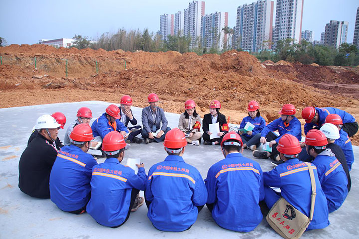 “城投廉音”宣講人在中國(guó)南方稀有金屬貿(mào)易集散中心項(xiàng)目為職工宣講集團(tuán)相關(guān)制度